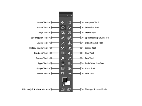 وقتی برنامه فتوشاپ را باز میکنید یک نوار باریک روی صفحه برای شما نمایان میشود که ابزارهای آن کارهای خاصی را انجام میدهند، این نوار ابزار از اولین نسخه فتوشاپ تا بهروزترین آن دچار تغییرات زیادی شده است. نوار ابزار طراحی شده دارای ابزارهای متفاوتی است کنار هر آیکون ابزار یک مثلث کوچک قرار دارد که بیانگر این است، آن ابزار قابلیتهای پنهان دیگری دارد. با راست کلیک بر روی آن ابزارهای نهفته نمایان میشوند، این پنل بسیار گسترده نیازهای مختلف کاربر را برطرف میسازد. Toolbar ماهیت کلی ابزارهای فتوشاپ است در ادامه به کاربرد برخی از این ابزارها میپردازیم.