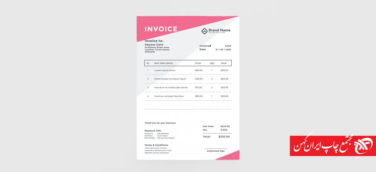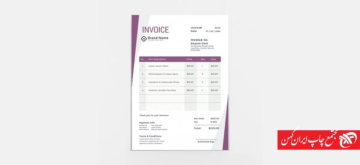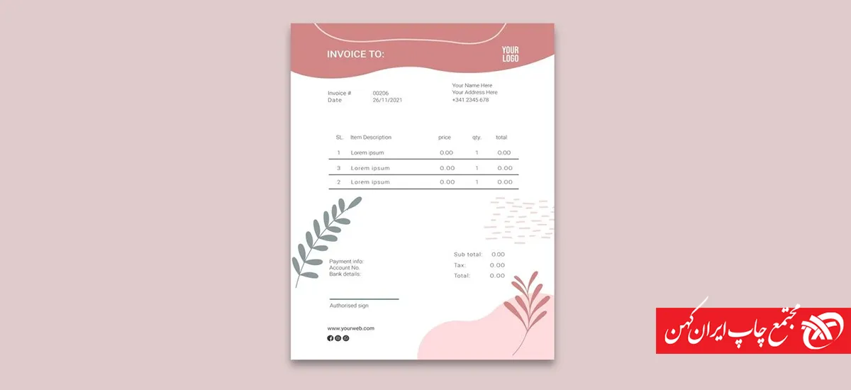 • در طراحی فاکتور تجاری، حتما آرام برندتان حک شود.