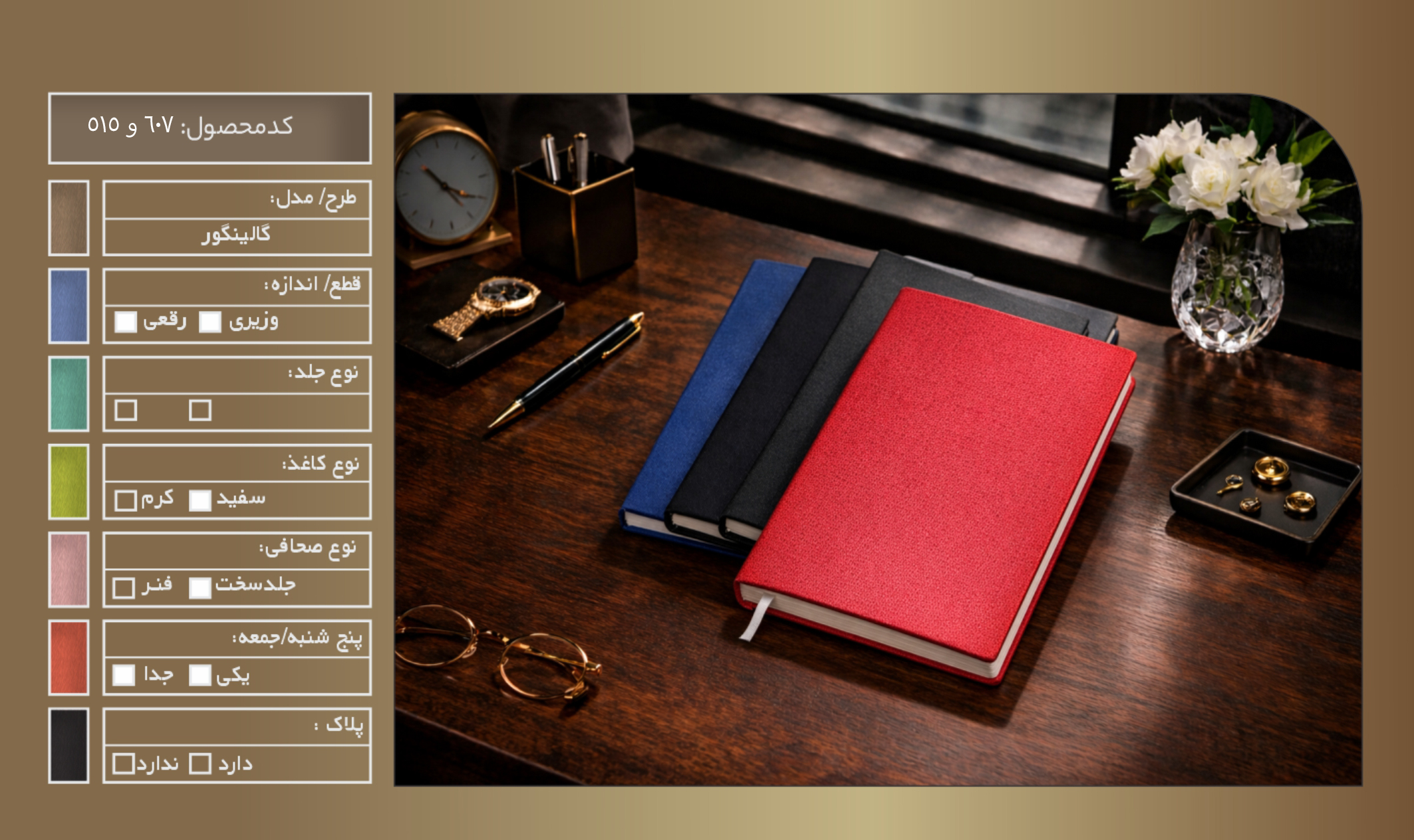 شما اینجا هستید: چاپ ایران کهن هدایای تبلیغاتی چاپ سررسید 1405 چاپ سالنامه متین کد 606